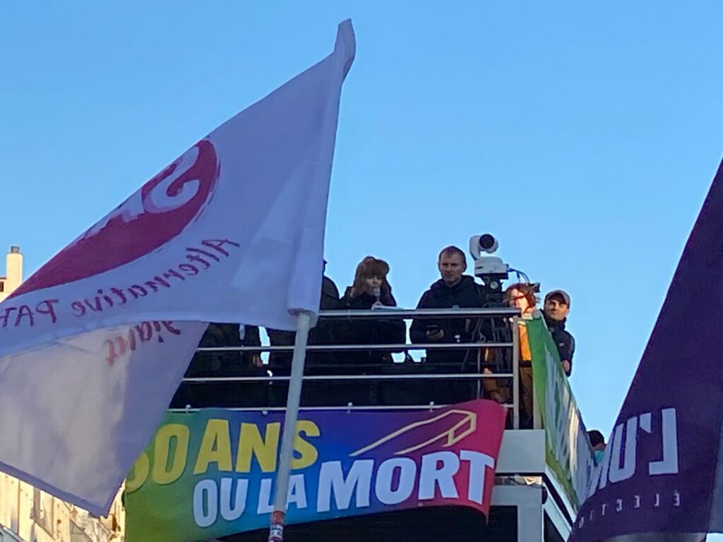 En début de manifestation des retraites en France, l’association en train de naître intervient pour les prisonniers politiques.
